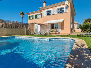 Verbringen Sie Ihren Urlaub in der Villa el Retiro in Llucmajor und erleben Sie eine entspannte Zeit in einem Ferienhaus mit eigenem Pool und Garten. Genießen Sie die zahlreichen Annehmlichkeiten wie kostenfreies WLAN, Grillmöglichkeiten und kostenfreie Privatparkplätze. Das Haus bietet Platz für bis zu 8 Personen und verfügt über 4 Schlafzimmer, 3 Badezimmer, eine voll ausgestattete Küche und eine Terrasse mit Poolblick. Nutzen Sie die Möglichkeit zum Wandern, Angeln oder entspannen Sie am ganzjährig geöffneten Außenpool.