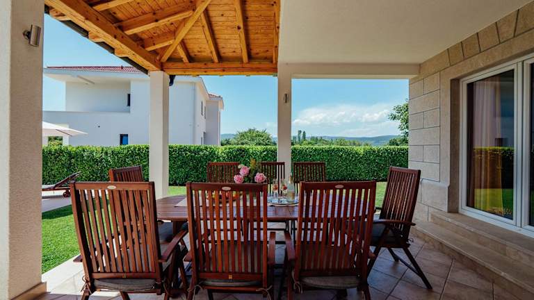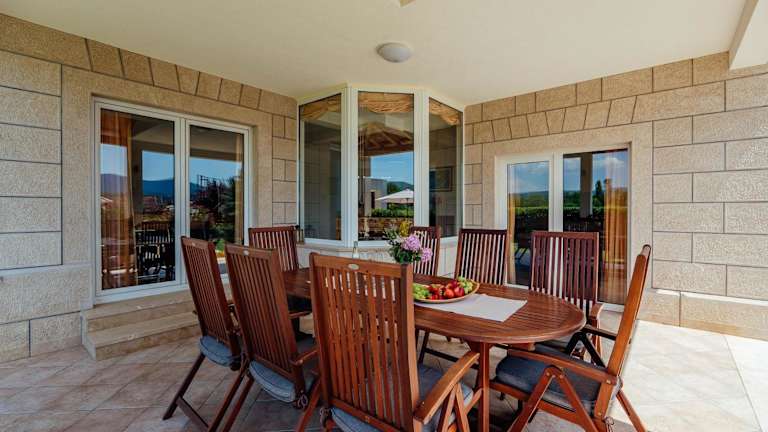 Die Villa Latica verfügt über fünf klimatisierte Schlafzimmer und bietet somit ausreichend Platz für große Gruppen oder Familien. Das Wohnzimmer und die voll ausgestattete Küche mit Kühlschrank und Kaffeemaschine sorgen für ein komfortables und angenehmes Ambiente. Zwei Badezimmer mit Bidet und Dusche stehen den Gästen zur Verfügung. Handtücher und Bettwäsche werden gestellt und sorgen für zusätzlichen Komfort während des Aufenthalts.