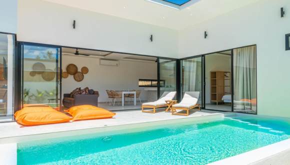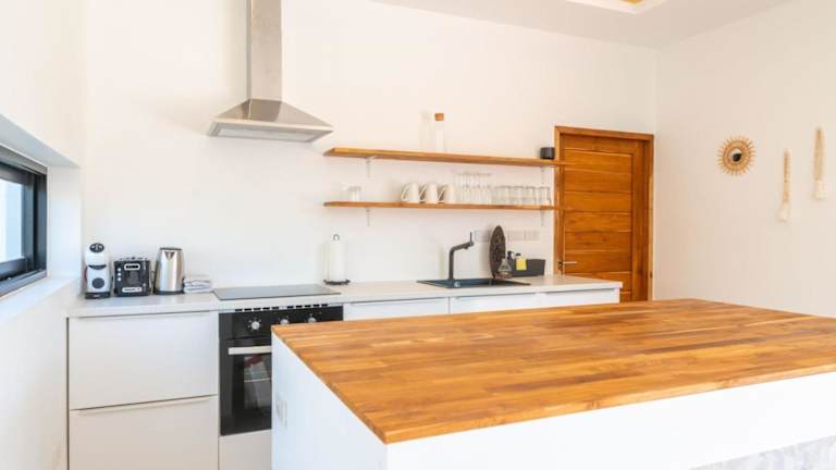 Die Villa besteht aus 2 separaten Schlafzimmern, einer voll ausgestatteten Küche mit Kühlschrank und Ofen sowie 2 Badezimmern. Handtücher und Bettwäsche werden bereitgestellt.