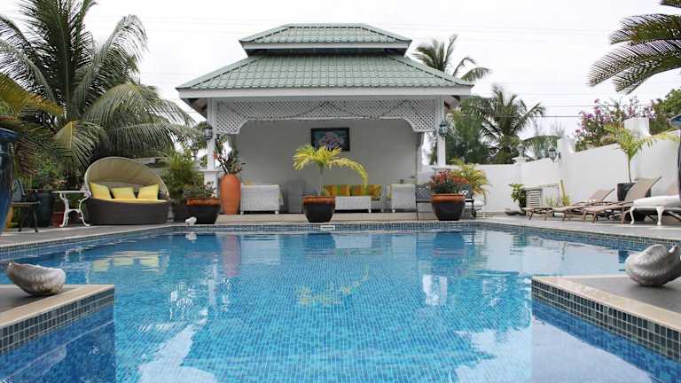 Verbringen Sie Ihren Urlaub in der Le Bonheur Villa in Victoria und genießen Sie den Luxus eines ganzjährig geöffneten Außenpools, kostenfreiem WLAN und einem Grillplatz. Die Unterkunft bietet kostenfreie Privatparkplätze und eine Bar, in der Sie entspannen können. Die Zimmer sind modern eingerichtet und verfügen über ein eigenes Bad. Einige Zimmer bieten einen Sitzbereich und einen atemberaubenden Blick auf das Meer oder den Pool. Das freundliche Personal steht Ihnen rund um die Uhr zur Verfügung und hilft Ihnen gerne bei der Organisation von Hochzeiten. Die Villa befindet sich in der Nähe des Victoria Clock Tower und der Seychellen National Botanical Gardens. Der internationale Flughafen Seychellen ist nur eine kurze Fahrt entfernt.