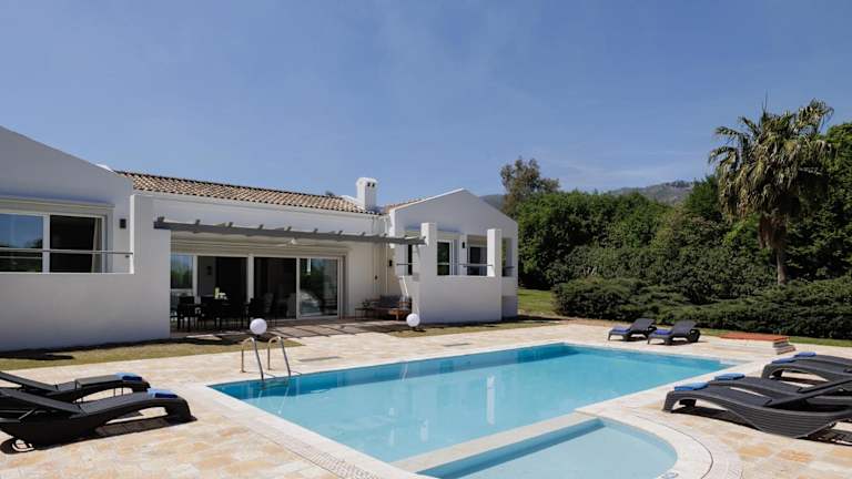 Die Villa bietet Platz in 4 Schlafzimmern sowie einem Wohnzimmer und ist mit einer voll ausgestatteten Küche inklusive Kühlschrank und Kaffeemaschine versehen. Es gibt außerdem 4 Badezimmer mit Dusche und Haartrockner. Handtücher und Bettwäsche werden bereitgestellt, und die Villa ist klimatisiert.