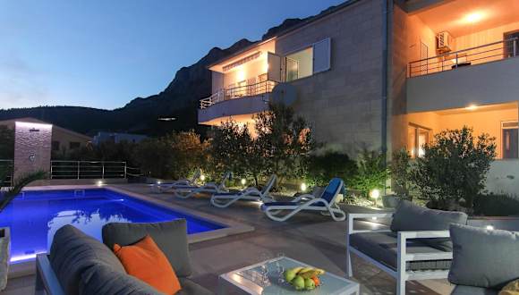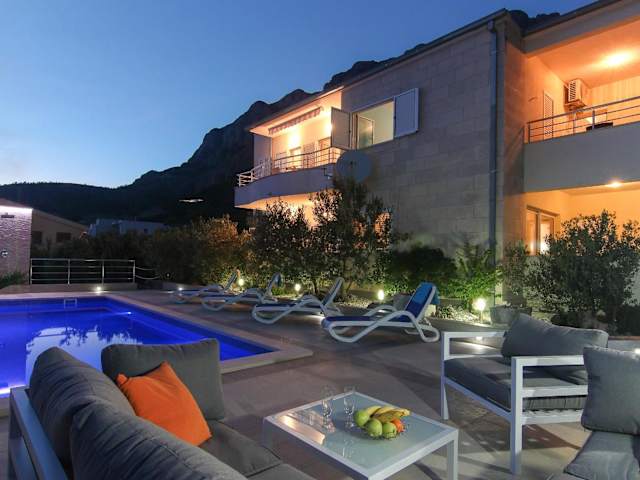 Die Villa Levanda liegt in einer erhöhten Lage, etwa 2 km vom nächsten Strand und dem Zentrum von Makarska entfernt. Von hier aus genießen Sie einen Panoramablick auf das Meer. Die Umgebung lädt zu Spaziergängen und Erkundungstouren ein. Das Franziskanerkloster von Makarska ist nur 2,5 km entfernt und der Busbahnhof erreicht man nach 2 km. Der Flughafen Split ist etwa 75 km entfernt.