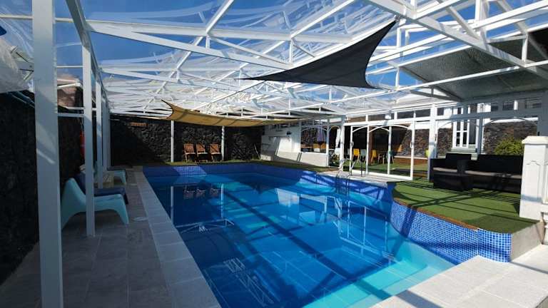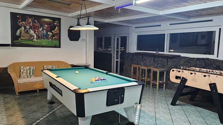 Die Villa Life in Güime ist ein Traumziel für einen erholsamen und luxuriösen Urlaub. Mit einem Außenpool, einem Fitnesscenter und einem schönen Garten bietet die Villa alles, was Sie für einen unvergesslichen Aufenthalt benötigen. Mit kostenfreiem WLAN und Stadtblick können Sie sich in dieser Unterkunft wie zu Hause fühlen. Die Villa verfügt über 5 klimatisierte Schlafzimmer, ein geräumiges Wohnzimmer und eine voll ausgestattete Küche. Die modernen Badezimmer bieten Ihnen eine Dusche und kostenlose Pflegeprodukte. Genießen Sie Ihre Zeit auf der Terrasse oder nutzen Sie den Kinderspielplatz für Unterhaltung. Entdecken Sie die Umgebung beim Wandern oder entspannen Sie sich beim Billardspielen. Besuchen Sie das Denkmal Campesino oder den Rancho Texas Park, die beide nur eine kurze Autofahrt entfernt sind. Der Flughafen Lanzarote ist ebenfalls leicht erreichbar, da er nur 4 km von der Villa entfernt liegt.