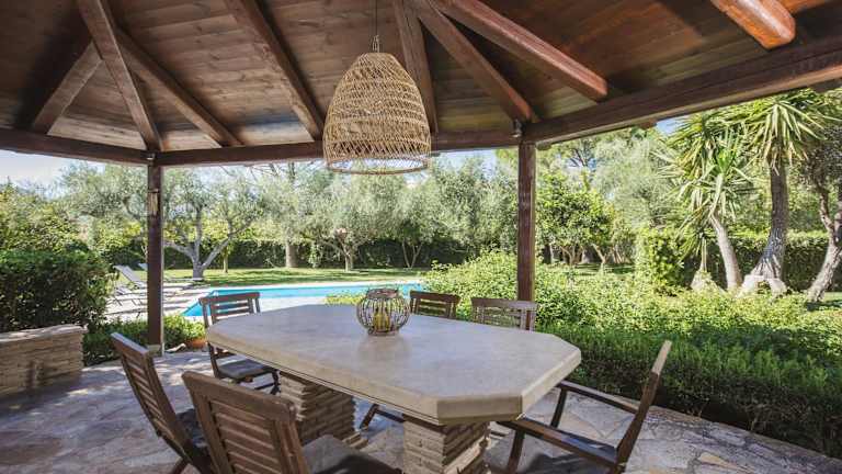 Die Villa ist klimatisiert und verfügt über einen Wohnbereich mit Sitzgelegenheiten sowie eine Küche, die mit einem Kühlschrank ausgestattet ist. Zur Ausstattung gehören zudem ein Fernseher, Handtücher und Bettwäsche. Die Unterkunft bietet komfortable Möbel sowie Gartenmöbel im Außenbereich.