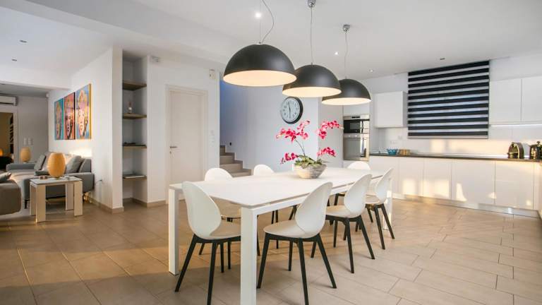 Die voll ausgestattete Küche der Villa beinhaltet einen Kühlschrank und eine Kaffeemaschine, was die Selbstverpflegung ermöglicht.