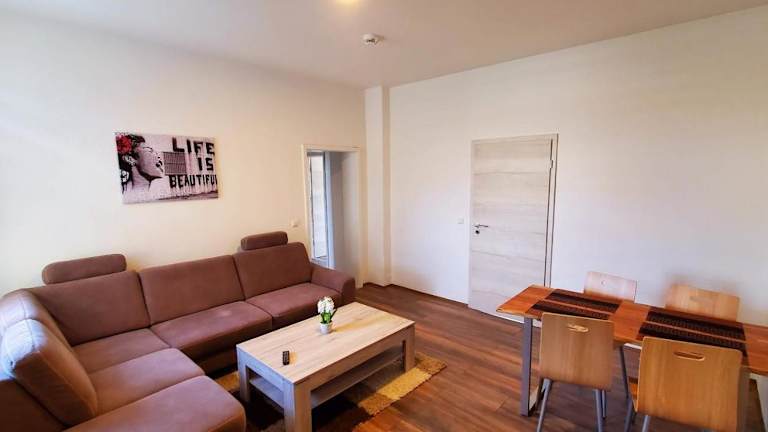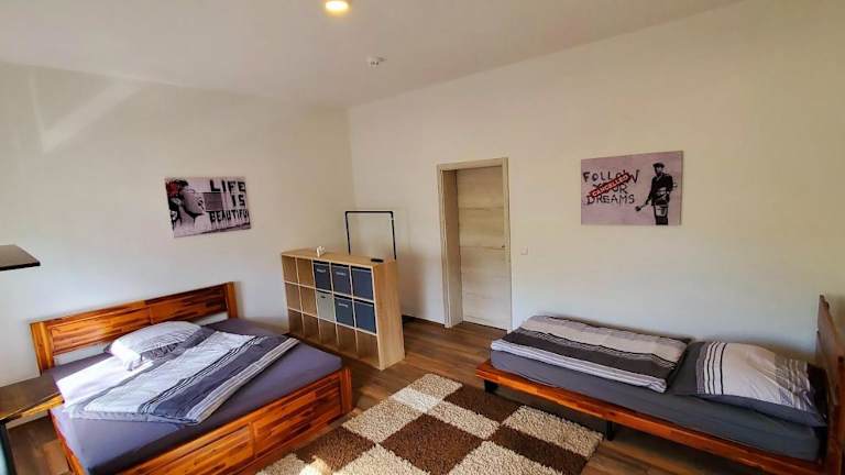 Die Ferienwohnung umfasst drei Schlafzimmer sowie ein Wohnzimmer, das mit einem Flachbild-TV und Satellitenkanälen ausgestattet ist. Eine voll ausgestattete Küche mit Kühlschrank und Ofen steht zur Verfügung. Zudem gibt es ein Badezimmer mit einer Badewanne. Handtücher und Bettwäsche werden bereitgestellt.