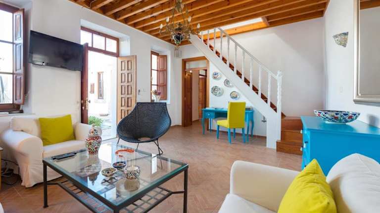 Die Villa Lindos ist ein traditionelles Gebäude aus dem Jahr 1920, das über 2 Etagen verteilt ist. Die geräumigen Zimmer sind klimatisiert und verfügen über eine komplett ausgestattete Küche. Die Zimmer zeichnen sich durch Holzbalkendecken und geschmackvolles Mobiliar aus. Im Wohnzimmer finden Sie ein bequemes Sofa, Sessel, einen LCD-Sat-TV und einen DVD-Player. In der oberen Etage befinden sich 2 Schlafzimmer und ein großes Arbeitszimmer. Eine Waschmaschine und eine Spülmaschine stehen Ihnen ebenfalls zur Verfügung.