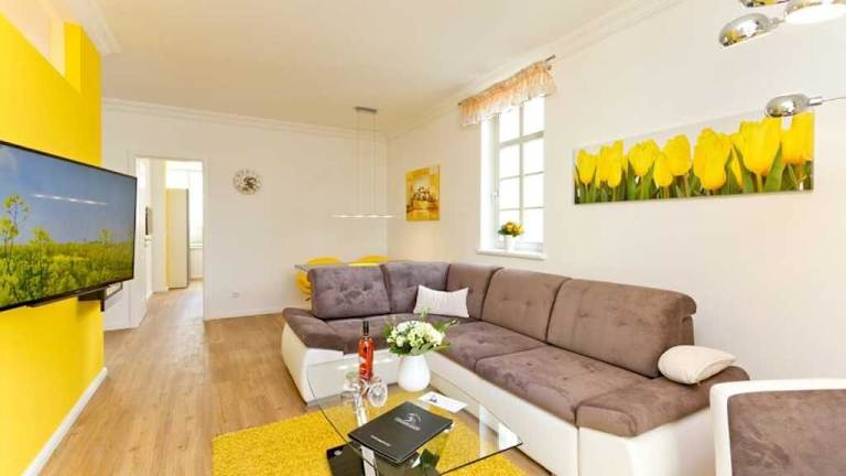 Die Villa Livia Wohnung 01 bietet eine moderne Unterkunft mit Balkon, kostenlosem WLAN und einem kostenlosen Privatparkplatz. Die Unterkunft richtet sich an Gäste, die Ruhe und Erholung suchen. Eine Zahlung per Überweisung ist vor der Anreise erforderlich, und es werden keine Junggesellen- oder ähnliche Feiern erlaubt. Die Unterkunft ist eine Nichtraucherzone.