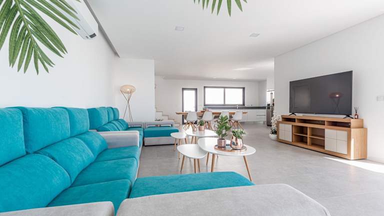 Die Unterkunft bietet Platz in einer klimatisierten Villa mit 4 Schlafzimmern, einem Wohnzimmer und 4 Badezimmern, die jeweils mit einer Dusche und einem Haartrockner ausgestattet sind. Handtücher und Bettwäsche werden bereitgestellt.