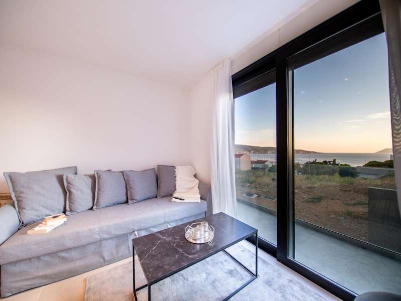 Die Villa Luce bietet klimatisierte Unterkünfte mit kostenfreiem WLAN. Das Apartment mit Meerblick verfügt über eine Terrasse, auf der Sie entspannen und die Aussicht genießen können. Im Inneren finden Sie einen gemütlichen Sitzbereich und einen Flachbild-TV für Ihre Unterhaltung. Die voll ausgestattete Küche ist mit einem Kühlschrank und einem Geschirrspüler ausgestattet, so dass Sie Ihre eigenen Mahlzeiten zubereiten können. Das private Badezimmer verfügt über eine Dusche und kostenlose Pflegeprodukte.