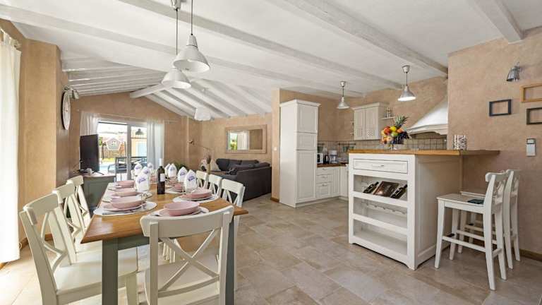 Die Villa bietet 4 Schlafzimmer und ein Wohnzimmer. Die voll ausgestattete Küche umfasst einen Kühlschrank und eine Kaffeemaschine. Es sind 5 Badezimmer vorhanden, die jeweils mit einer Dusche und einem Whirlpool ausgestattet sind. Handtücher und Bettwäsche werden bereitgestellt.