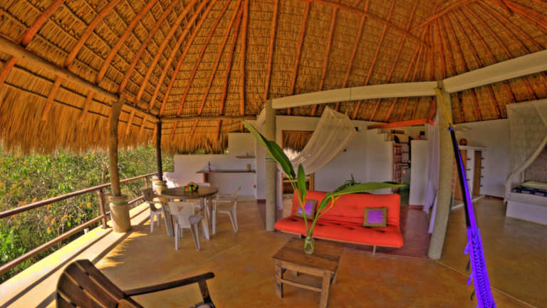 Die Villa Luna de Miel befindet sich in der Stadt Mazunte an der Riviera Oaxaca. Der Strand von Rinconcito liegt nur 300 m entfernt und lädt zu erholsamen Stunden am Meer ein. In der Nähe des Hotels finden Sie auch die Bäckerei La Baguette, in der Sie leckere Backwaren genießen können. Die Umgebung bietet auch die Möglichkeit, Bootsfahrten und Tierbeobachtungen zu unternehmen, darunter Wal-, Delfin- und Schildkrötenbeobachtungen. Das Naturschutzgebiet Punta Cometa ist nur 20 Gehminuten entfernt und der Strand von Puerto Ángel erreichen Sie in 10 Autominuten. Der internationale Flughafen Huatulco ist eine 40-minütige Autofahrt entfernt und die Bucht von Puerto Escondido ist 60 km entfernt.