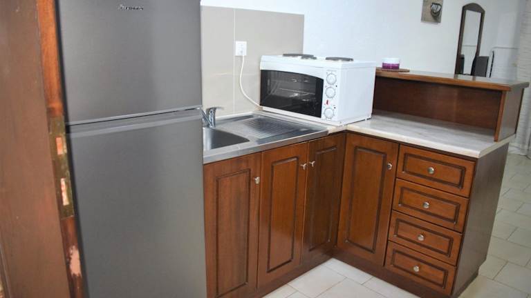Die Studios sind hell und geräumig ausgestattet mit einem Flachbild-TV, Klimaanlage sowie einer Küchenzeile, die mit Küchenutensilien, einem Minibackofen, einem Wasserkocher und einem Kühlschrank versehen ist. Jedes Zimmer hat ein eigenes Bad mit Dusche und Haartrockner. Einige Unterkünfte bieten zusätzlich einen eigenen blühenden Innenhof.