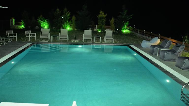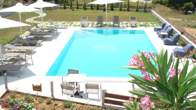 Die Villa Madeleine Tower View bietet einen Außenpool mit einer möblierten Sonnenterrasse, umgeben von gepflegten Blumengärten. Die Unterkunft verfügt über Studios mit kostenfreiem WLAN und Balkonen, die Blick auf die Bucht von Kassandra oder den Garten bieten. Eine Grillmöglichkeit im Garten ist vorhanden, ebenso wie ein Kinderspielplatz. Die Reinigung und der Wechsel der Handtücher erfolgen alle zwei Tage.