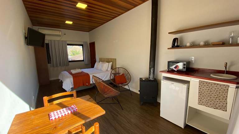 Die Villa Mantiqueira SFX - Suítes verfügt über einen ganzjährig geöffneten Außenpool mit Blick. Es sind Sonnenstühle und Sonnenschirme am Poolbereich vorhanden sowie Optionen für Picknicks und eine Feuerstelle im Freien.