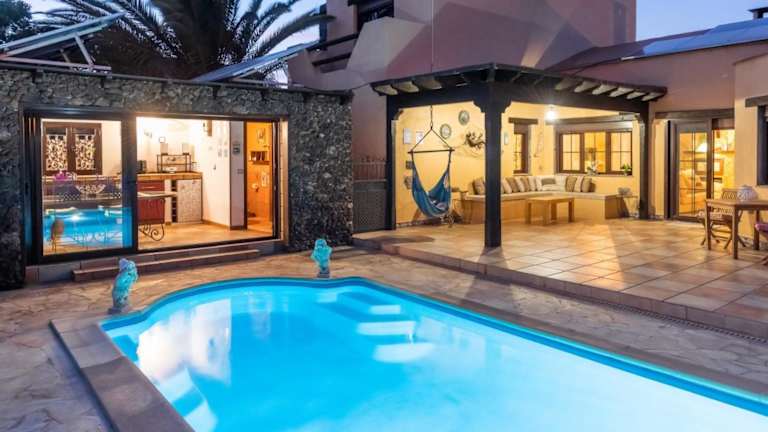 Erleben Sie einen entspannten Aufenthalt im Casa Villaverde in Villaverde auf Fuerteventura. Genießen Sie den atemberaubenden Bergblick und die ruhige Atmosphäre, nur 12 Fahrminuten von Corralejo entfernt. Das Haus bietet kostenfreie Privatparkplätze und eine gut ausgestattete Küche. Entspannen Sie im ganzjährig beheizten Außenpool mit Salzwasser und dem Whirlpool. Entdecken Sie die umliegenden Orte wie Caleta De Fuste und Puerto del Rosario. Der Flughafen Fuerteventura ist nur 21 km entfernt.