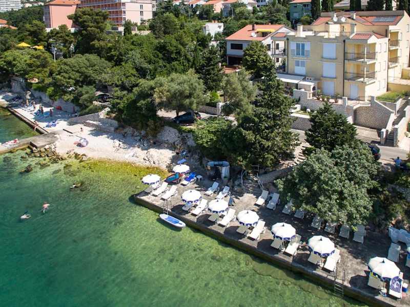 Das Hotel Villa Mare Crikvenica liegt nur 5 m von einem Steinstrand entfernt und bietet Ihnen somit direkten Zugang zum Meer. Der Strand ist mit kostenlosen Liegestühlen und Sonnenschirmen ausgestattet, damit Sie die Sonne und das Meer in vollen Zügen genießen können. In der unmittelbaren Umgebung des Hotels finden Sie ein Restaurant, in dem Sie lokale Spezialitäten probieren können, sowie ein Lebensmittelgeschäft und einen Markt, auf dem Sie frische Lebensmittel kaufen können. Die Lage des Hotels ermöglicht es Ihnen auch, die umliegenden Sehenswürdigkeiten zu erkunden, darunter der Nationalpark Plitvice, der 160 km entfernt liegt, und die Insel Krk, die nur 15 km entfernt ist. Wenn Sie mit dem Flugzeug anreisen, erreichen Sie den Flughafen Rijeka in Omišalj auf Krk ebenfalls nach einer kurzen Fahrt von 15 km. Auf Anfrage können Flughafentransfers arrangiert werden.
