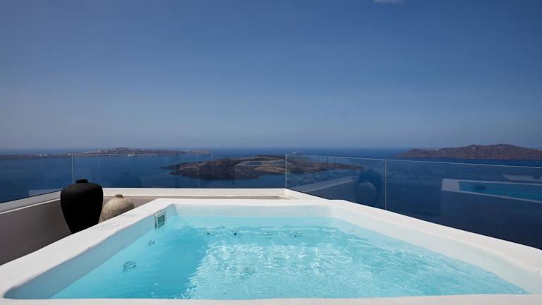Das Damigos Caldera World befindet sich in Firostefani, nur 10 Gehminuten von Fira entfernt. Die ruhige Gegend bietet eine entspannte Atmosphäre und ist dennoch gut mit Restaurants und Geschäften ausgestattet. Fira, das nur einen kurzen Spaziergang entfernt ist, bietet eine lebhafte Atmosphäre mit einer Vielzahl von Unterhaltungsmöglichkeiten wie Bars und Clubs. Der Strand von Monolithos ist nur 5 km entfernt und lädt zu einem Tag voller Sonne und Meer ein.