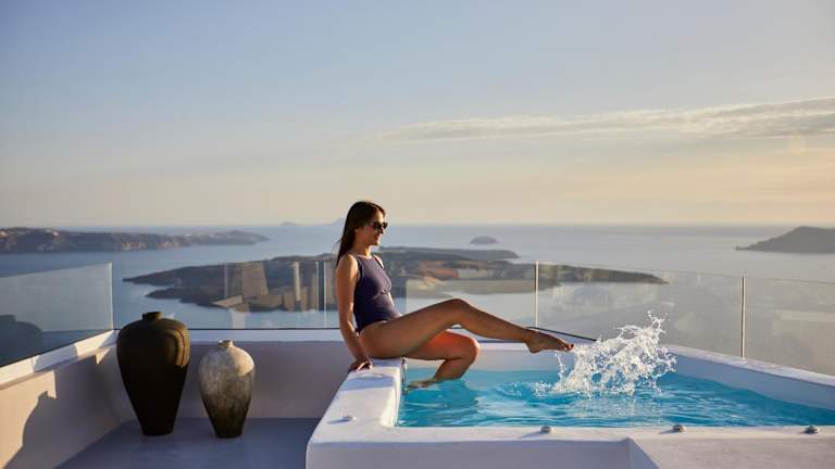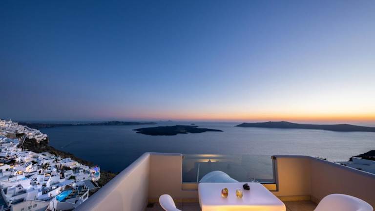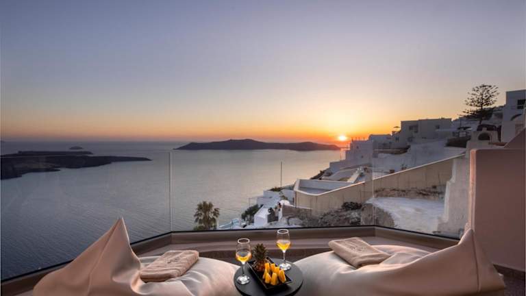 Beginnen Sie Ihren Tag mit einem köstlichen Frühstück auf dem Balkon Ihres Zimmers im Damigos Caldera World. Genießen Sie dabei den atemberaubenden Blick auf den Vulkan von Santorin und die Ägäis. Das Hotel bietet auch eine Sonnenterrasse, auf der Sie sich entspannen und die Aussicht auf die nahe gelegenen Inseln und den berühmten Santorin-Sonnenuntergang genießen können.