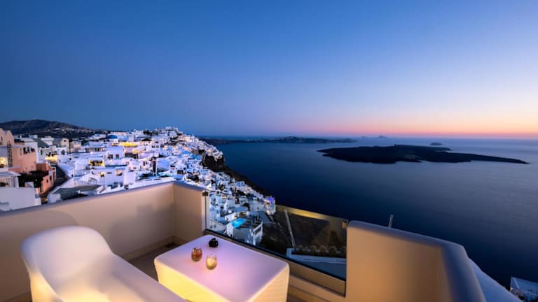 Das Damigos Caldera World in Firostefani bietet einen entspannten Aufenthalt mit atemberaubender Aussicht auf den Vulkan von Santorin und die Ägäis. Die Zimmer und Suiten sind komfortabel ausgestattet und verfügen über kostenfreies WLAN. Genießen Sie ein köstliches Frühstück auf dem Balkon mit Blick auf die malerische Landschaft. Entspannen Sie auf der Sonnenterrasse und lassen Sie sich von der Schönheit der nahe gelegenen Inseln und dem berühmten Santorin-Sonnenuntergang verzaubern. In der ruhigen Umgebung von Firostefani finden Sie Restaurants und Geschäfte, während das lebhafte Fira mit seinen Bars und Clubs nur einen kurzen Spaziergang entfernt ist. Der Strand von Monolithos ist ebenfalls leicht erreichbar.