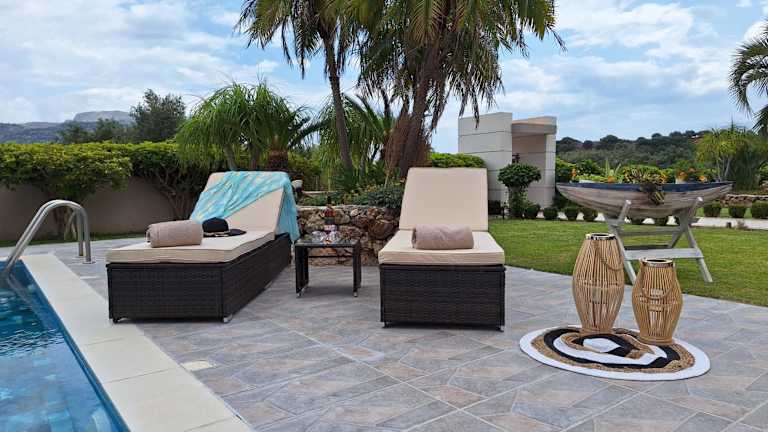 Die Villa Maria bietet komfortable Unterkünfte mit insgesamt 4 Schlafzimmern. Das klimatisierte Ferienhaus verfügt über ein geräumiges Wohnzimmer, eine voll ausgestattete Küche mit Kühlschrank und Kaffeemaschine sowie 2 Badezimmer mit Dusche und Whirlpool. Handtücher und Bettwäsche werden gestellt, damit Sie sich wie zu Hause fühlen können.