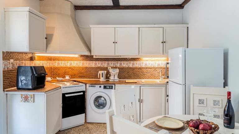 Die Ferienwohnung umfasst insgesamt 3 Schlafzimmer und ein Badezimmer. Zur Ausstattung gehören Bettwäsche, Handtücher, ein TV, eine voll ausgestattete Küche sowie Gartenmöbel auf dem Balkon, der einen Blick auf das Meer bietet.
