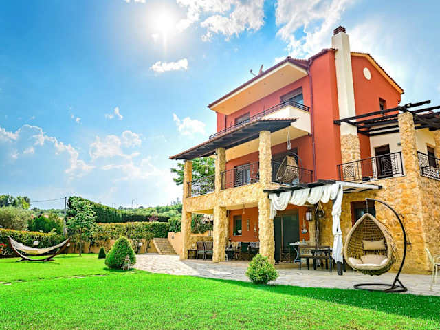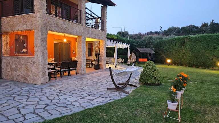 Die Villa Mariellie in Elaiokhórion ist eine klimatisierte Villa mit einer Terrasse, die Ihnen einen komfortablen und erholsamen Aufenthalt bietet. Die Unterkunft liegt nur wenige Gehminuten vom Strand entfernt und verfügt über kostenlose Privatparkplätze. Mit kostenfreiem WLAN, einem Essbereich und zwei voll ausgestatteten Küchen bietet die Villa alle Annehmlichkeiten für einen angenehmen Selbstversorgerurlaub. Das eigene Bad ist mit einer Badewanne ausgestattet und Handtücher sowie Bettwäsche werden gestellt. Am Strand stehen Ihnen private Liegestühle und Sonnenschirme zur Verfügung. Die Villa Mariellie ist nur 5 km von Nea Peramos und 35 km vom internationalen Flughafen Kavala entfernt.