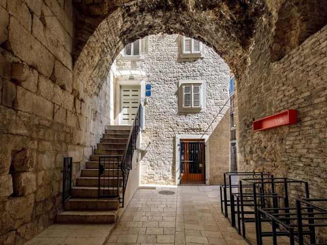 Die Villa Marta befindet sich im Herzen des Diokletianpalasts in Split. Von hier aus haben Sie einen idealen Ausgangspunkt, um die historischen Sehenswürdigkeiten der Stadt zu erkunden. Die Terrasse der Villa bietet Ihnen einen herrlichen Blick auf den Palast und die Kathedrale St. Duje. In unmittelbarer Nähe finden Sie Restaurants und den Gemüse- und Fischmarkt.