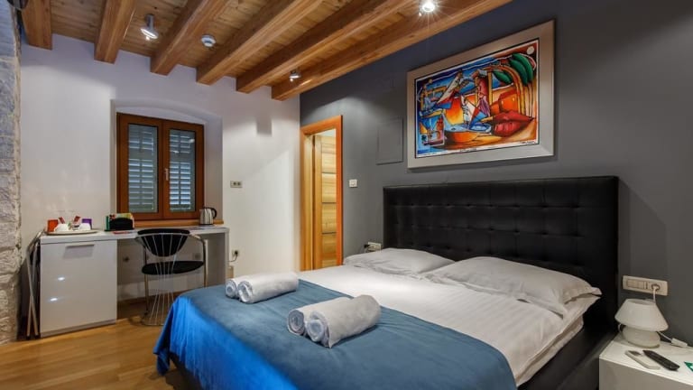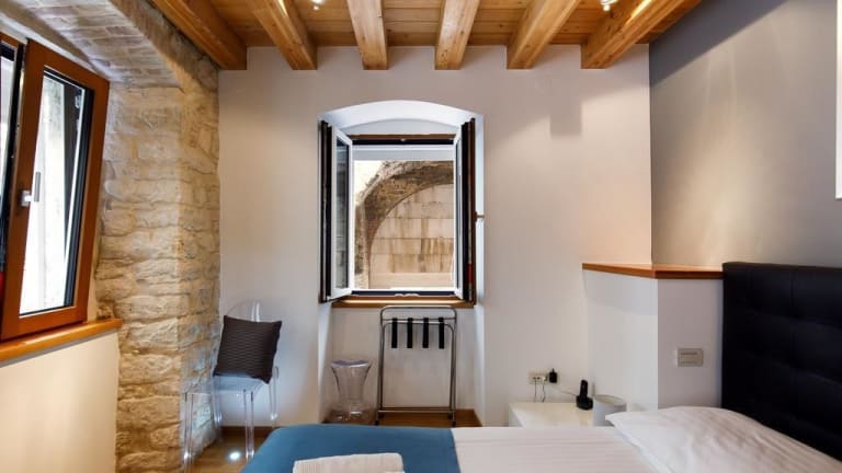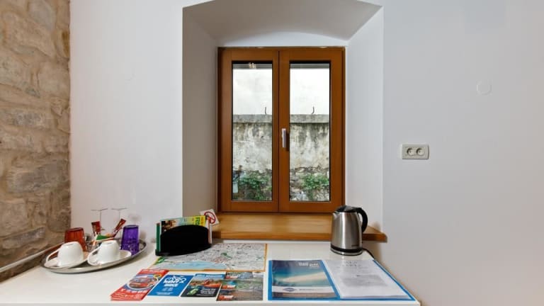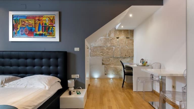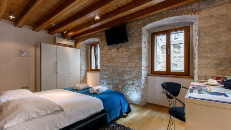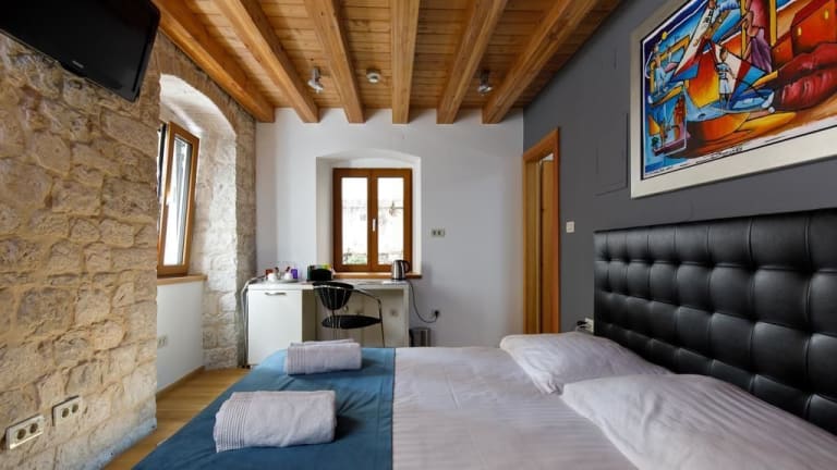 Die Villa Marta ist ein charmantes Hotel im Herzen des Diokletianpalasts in Split. Von der Terrasse aus können Sie einen atemberaubenden Panoramablick auf den Palast und den Turm der Kathedrale St. Duje genießen. Die stilvollen Zimmer und Apartments bieten Ihnen allen Komfort, den Sie für einen angenehmen Aufenthalt benötigen. Buchen Sie geführte Touren oder Ausflüge direkt im Hotel und erkunden Sie die Umgebung. Der Flughafentransfer ist gegen Aufpreis verfügbar.