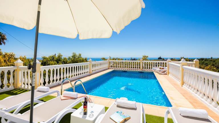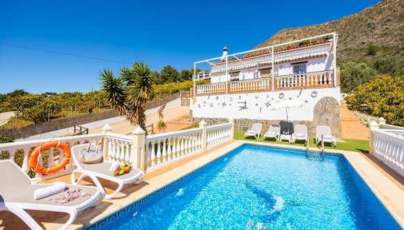 Die Villa Medina Paloma bietet klimatisierte Übernachtungsmöglichkeiten mit Balkon und Zugang zu einem eigenen Pool. Sie verfügt über 3 Schlafzimmer, 2 Badezimmer, eine voll ausgestattete Küche, einen Essbereich und eine Terrasse mit Meerblick. Zudem stehen den Gästen kostenfreies WLAN und ein kostenloser Privatparkplatz zur Verfügung.