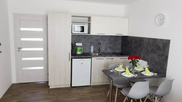 Die VILLA MEGER in Veľký Meder ist ein charmantes Hotel, das nur einen kurzen Abstand von den Sehenswürdigkeiten von Győr entfernt liegt. Das Hotel bietet komfortable Unterkünfte mit kostenfreiem WLAN, Klimaanlage und Zugang zu einem schönen Garten. Die Apartments sind gut ausgestattet und verfügen über eine Terrasse mit Gartenblick. Die zentrale Lage des Hotels ermöglicht es den Gästen, die Umgebung leicht zu erkunden und Sehenswürdigkeiten wie das Schloss Amade und die Universität Széchenyi István zu besuchen. Der Flughafen Bratislava ist ebenfalls gut erreichbar.