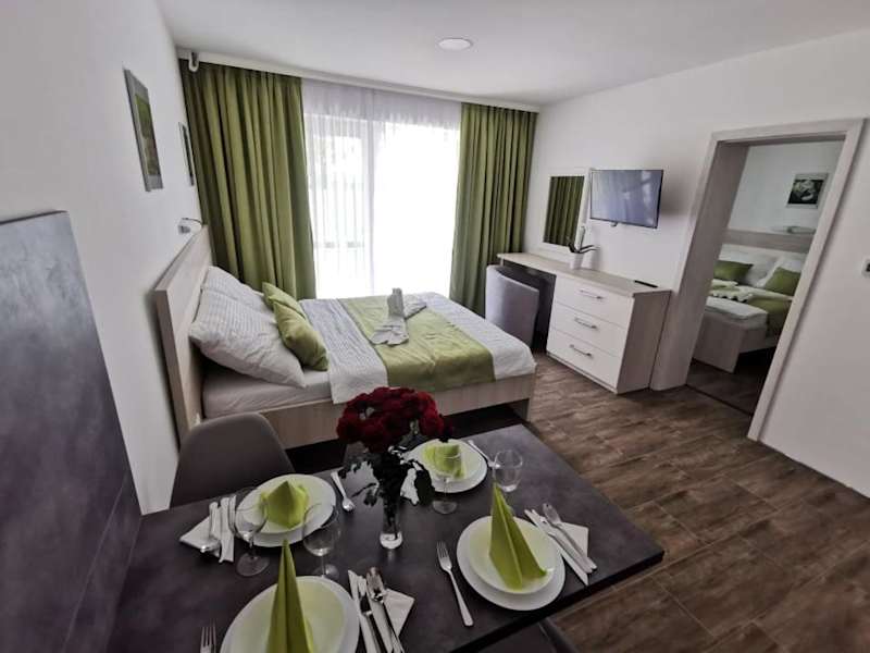 Das Hotel bietet keine Verpflegungsmöglichkeiten vor Ort an, aber in der voll ausgestatteten Küchenzeile der Apartments können die Gäste ihre eigenen Mahlzeiten zubereiten. Alternativ können die Gäste in den umliegenden Restaurants speisen und die lokale Küche genießen.