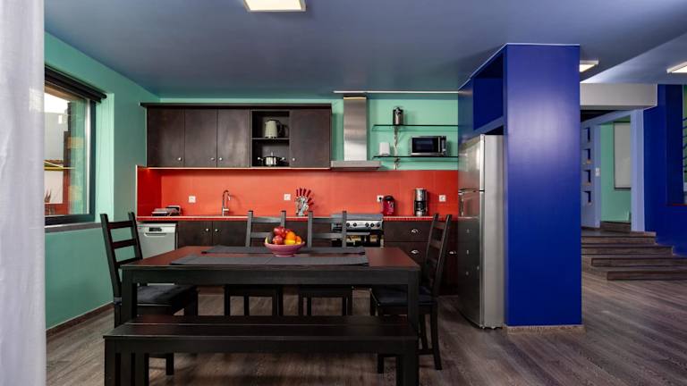 Die Villa Menelaos verfügt über eine Terrasse, auf der Sie sich entspannen und die Aussicht genießen können. Wenn Sie lieber in einem Restaurant essen möchten, finden Sie in der Umgebung eine Auswahl an gastronomischen Einrichtungen. Kostenfreie Parkplätze stehen zur Verfügung, falls Sie mit dem Auto anreisen.