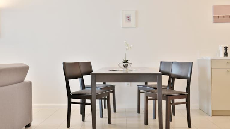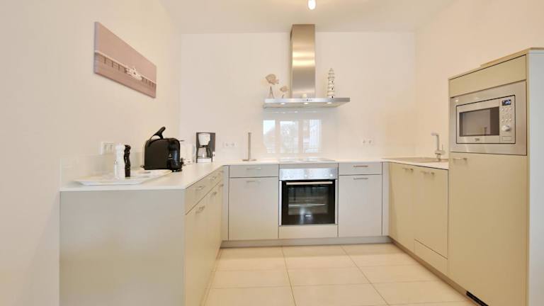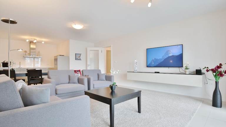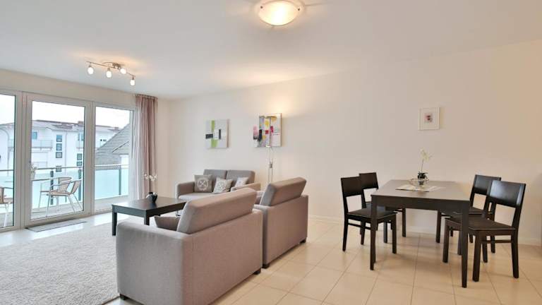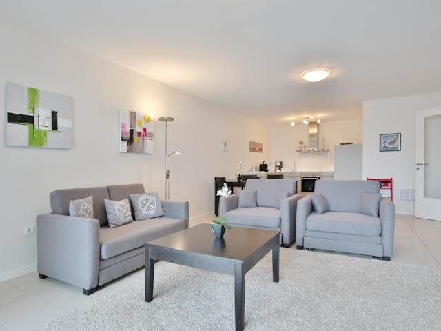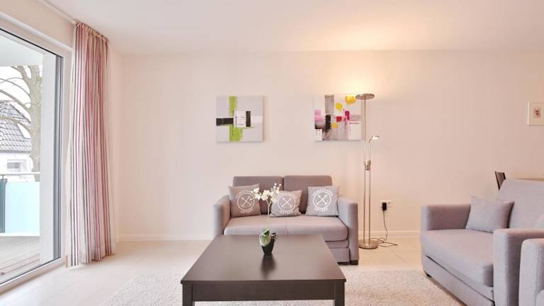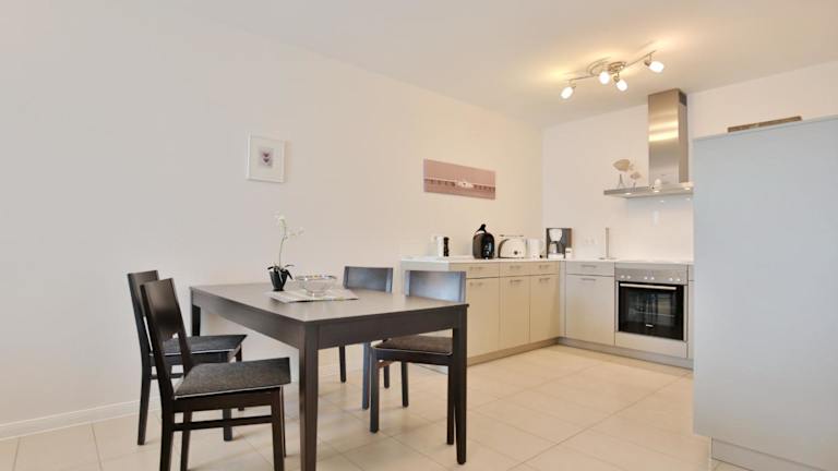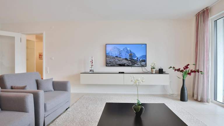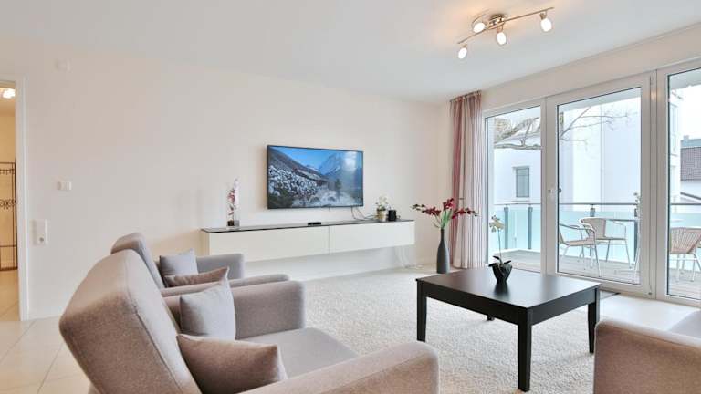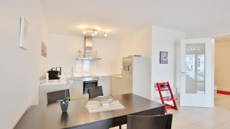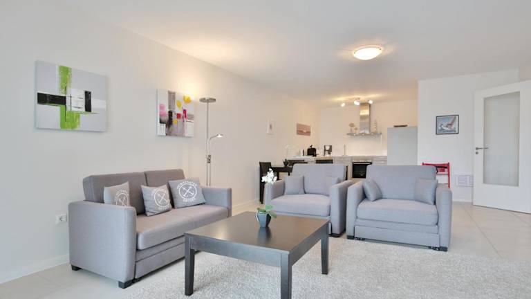 Die Ferienwohnung umfasst einen Balkon, ein Schlafzimmer, ein Wohnzimmer sowie eine gut ausgestattete Küche mit Kühlschrank und Geschirrspüler. Zur weiteren Ausstattung gehören ein TV, ein Blu-ray-Player, ein DVD-Player und ein CD-Player.