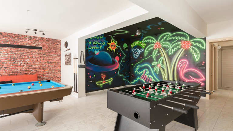 Die Unterkunft Villa Mia bietet Übernachtungsmöglichkeiten in einer modernen Villa mit einem externen beheizten Pool, einem Fitnesscenter und einem Garten. Zur Ausstattung gehören ein Billardtisch, Tischtennis, kostenloses WLAN und Stadtblick. Die Villa hat eine Terrasse sowie einen Kinderspielplatz und ist für alle Gäste zugänglich, wobei einige Einschränkungen gelten, beispielsweise für Partys oder Feiern.