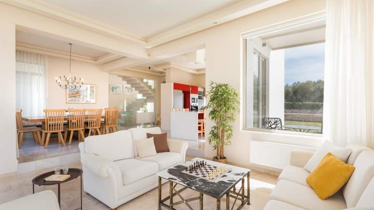 Die klimatisierte Villa besteht aus fünf Schlafzimmern, einem Wohnzimmer und einer voll ausgestatteten Küche, die unter anderem über einen Kühlschrank und eine Kaffeemaschine verfügt. Zudem sind sechs Badezimmer mit Dusche und Whirlpool vorhanden. Handtücher und Bettwäsche werden bereitgestellt.