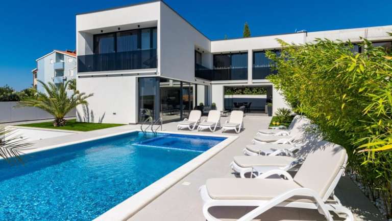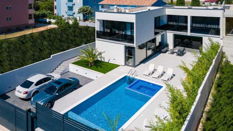 Die Villa Miaa ist eine neu gebaute, moderne Unterkunft, die Platz für bis zu 9 Personen bietet. Sie verfügt über ein eigenes Grundstück mit einem beheizten Pool und einem Jacuzzi. Es wird eine klimatisierte Unterbringung mit Balkon, kostenlosem WLAN, Garten und kostenlosem Privatparkplatz angeboten.
