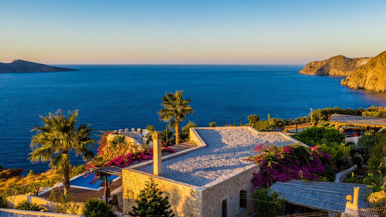 Die Unterkunft bietet eine komfortable Villa mit einem saisonalen Außenpool, einem Garten sowie einer Terrasse. Sie ermöglicht einen angenehmen Aufenthalt mit Blick auf das Meer und kostenlosem WLAN.