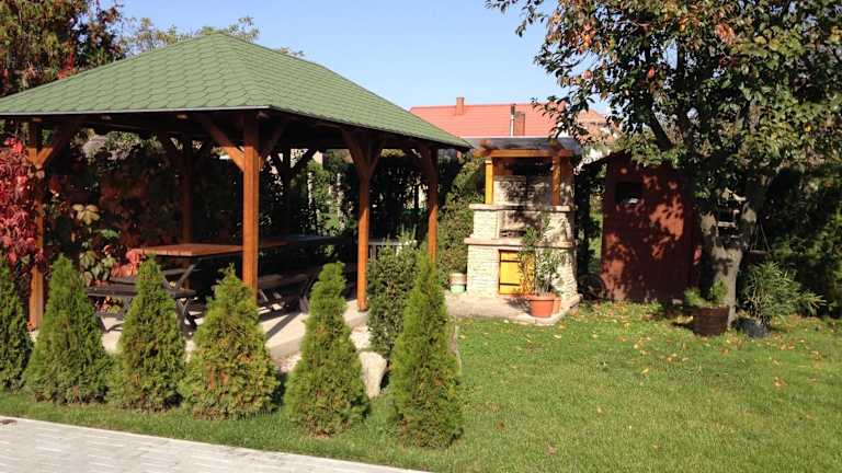Die Villa Mónika bietet einen schönen Garten mit Grillmöglichkeiten, in dem Sie sich entspannen und die warmen Sommerabende genießen können. Der Strand und der Plattensee bieten zahlreiche Wassersportmöglichkeiten und Aktivitäten wie Schwimmen, Segeln und Angeln. In der Umgebung können Sie auch wandern und Rad fahren. Bei Bedarf kann gegen Aufpreis ein Transfer vom Flughafen Sármellék oder vom Bahnhof Alsógyenes Bahnhof organisiert werden.