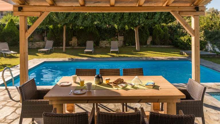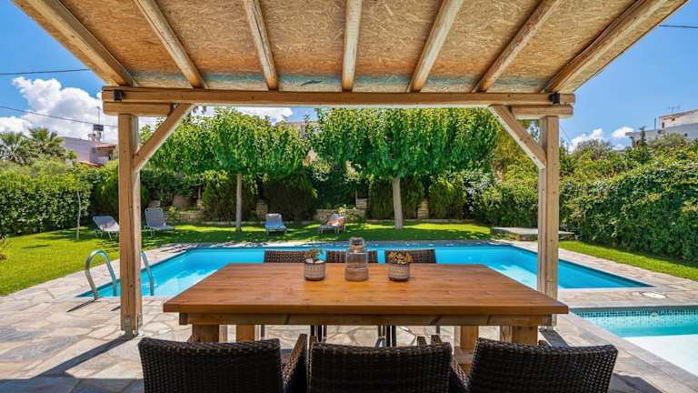 Die Villa Muse verfügt über einen eigenen Außenpool, in dem Sie sich an heißen Tagen abkühlen können. Entspannen Sie sich im Garten und genießen Sie die Ruhe und Privatsphäre dieser charmanten Unterkunft. In der Umgebung gibt es auch viele Möglichkeiten für Aktivitäten im Freien wie Wandern, Radfahren und Wassersport an den nahe gelegenen Stränden. Erkunden Sie die Umgebung und entdecken Sie die natürliche Schönheit der Insel Kreta.