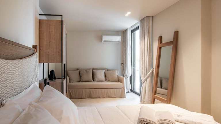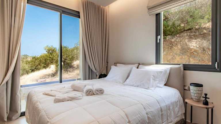 Die Zimmer in der Villa myporos sind mit Klimaanlage, einem Schreibtisch und einer Terrasse mit Meerblick ausgestattet. Ein eigenes Badezimmer, ein Flachbild-TV, Bettwäsche und Handtücher sind ebenfalls vorhanden. Die Räume verfügen über einen Kleiderschrank und eine Kaffeemaschine, um den Aufenthalt so angenehm wie möglich zu gestalten.