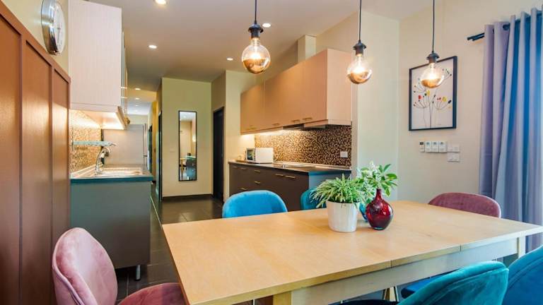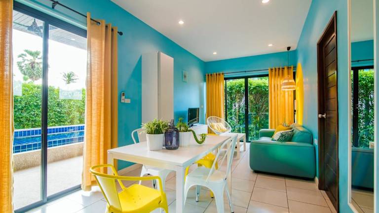 Die Villen der Villa Na Pran bieten Ihnen modernen Komfort inmitten einer grünen Oase. Jede Villa ist von einem Garten umgeben und verfügt über eine voll ausgestattete Küche, eine Essecke und einen gemütlichen Wohnbereich. Die Terrasse mit einer Sitzecke ist der perfekte Ort, um sich zu entspannen und die frische Luft zu genießen. Jede Villa verfügt außerdem über ein eigenes Badezimmer mit Dusche.