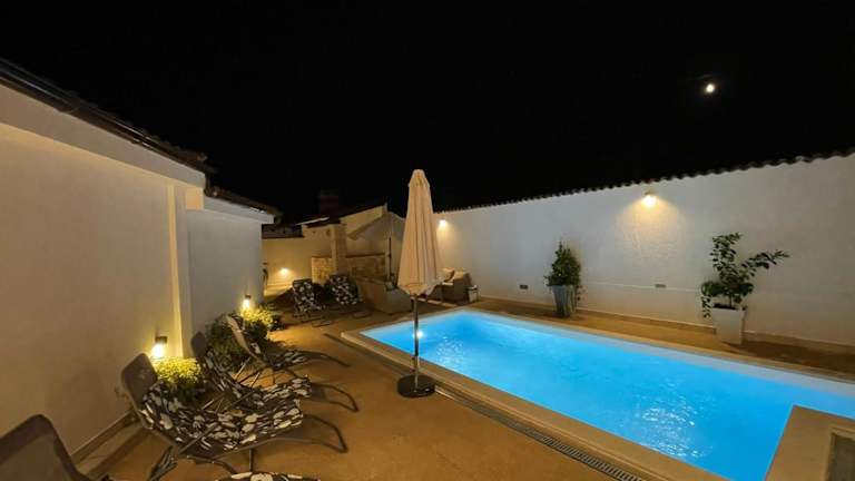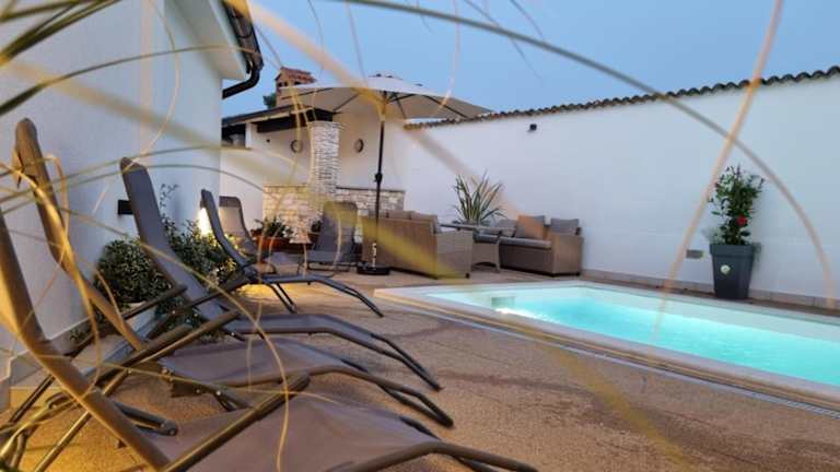 Die Villa Natka in Rovinjsko Selo ist der perfekte Ort für einen entspannten und komfortablen Aufenthalt. Mit einem eigenen Pool, einem schönen Garten und kostenfreiem WLAN bietet die Villa alles, was Sie für einen erholsamen Urlaub benötigen. Die geräumige Villa verfügt über 4 Schlafzimmer, ein großes Wohnzimmer und eine voll ausgestattete Küche. Die Lage der Villa ermöglicht es Ihnen, die umliegende Natur zu erkunden und Sehenswürdigkeiten wie die Kathedrale St. Eufemia Rovinj und das Amphitheater Pula zu besuchen.