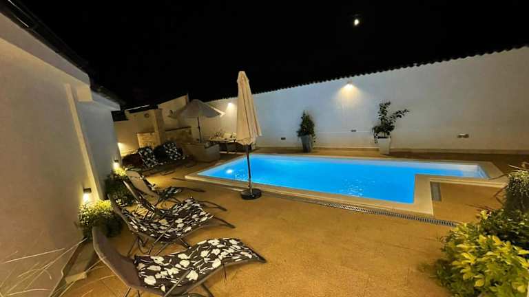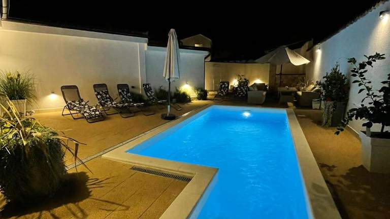 Die Villa Natka verfügt über 4 geräumige Schlafzimmer, die Platz für eine große Familie oder eine Gruppe von Freunden bieten. Das Wohnzimmer ist komfortabel eingerichtet und verfügt über einen Flachbild-Sat-TV. Die voll ausgestattete Küche bietet alles, was Sie für die Zubereitung Ihrer Mahlzeiten benötigen. Es gibt insgesamt 4 Badezimmer, jedes mit einer Dusche und einer Badewanne. Handtücher und Bettwäsche werden in der Villa zur Verfügung gestellt. Ein Highlight der Villa ist der private Pool, in dem Sie sich an warmen Tagen abkühlen können. Der Garten lädt zum Entspannen und Genießen der umliegenden Natur ein. Kostenfreie Privatparkplätze stehen ebenfalls zur Verfügung.