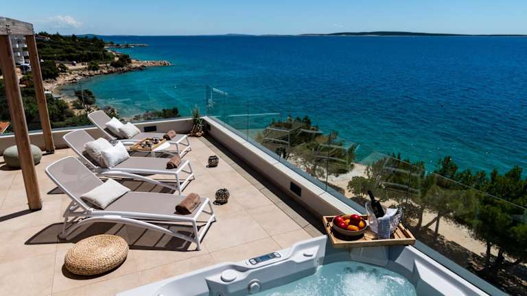 Die Villa Natura luxury apartments bieten kostenfreies WLAN, Grillmöglichkeiten, einen Garten und einen privaten Parkplatz. Die Unterkunft verfügt über eine Terrasse mit Meerblick und ist darauf ausgelegt, den Gästen einen komfortablen Aufenthalt zu ermöglichen, einschließlich zusätzlicher Annehmlichkeiten wie einem Whirlpool.