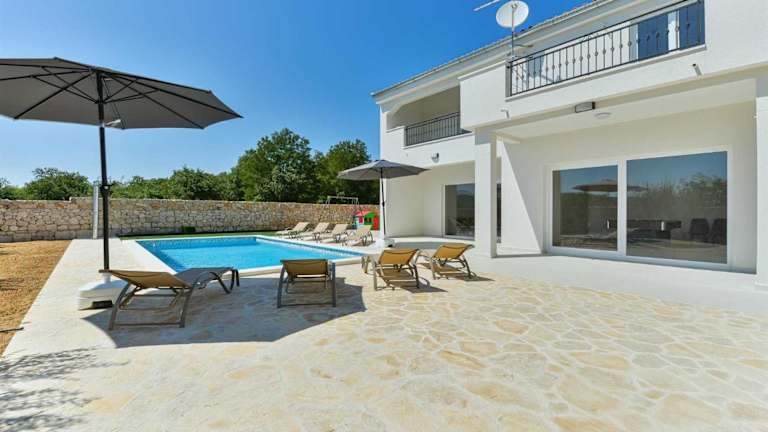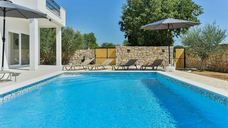 Die klimatisierte Villa Natura with pool verfügt über 4 Schlafzimmer, die für einen komfortablen Aufenthalt sorgen. Das geräumige Wohnzimmer lädt zum Entspannen ein und die voll ausgestattete Küche bietet alles, was Sie für die Zubereitung von Mahlzeiten benötigen. Die Villa verfügt außerdem über 4 Badezimmer mit Dusche und Haartrockner. Handtücher und Bettwäsche werden in der Villa gestellt, so dass Sie sich um nichts kümmern müssen.