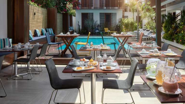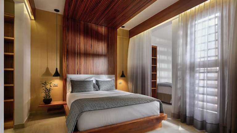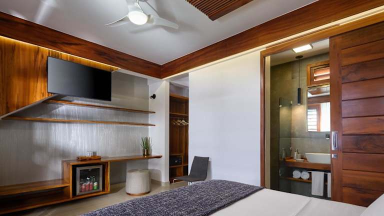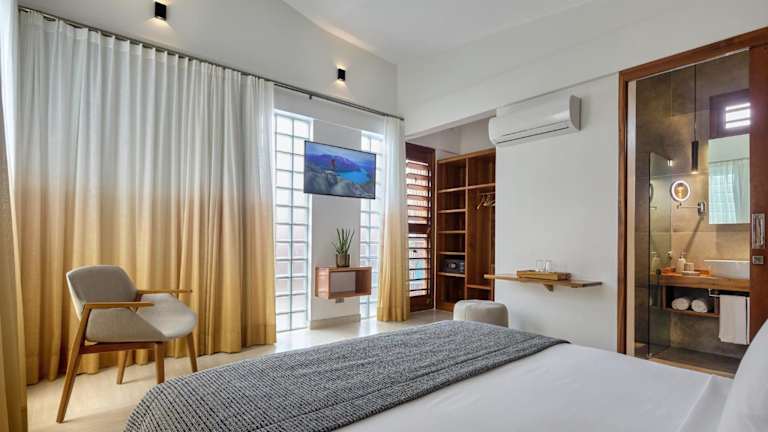 Die Zimmer sind mit Klimaanlage, Kleiderschrank, Flachbild-TV, eigenem Badezimmer, Bettwäsche, Handtüchern und einem Balkon mit Blick auf den Pool ausgestattet. Darüber hinaus steht in jedem Zimmer ein Safe zur Verfügung, und einige bieten eine Veranda oder ein Patio. Zusätzlich gibt es in jedem Gästezimmer eine Minibar.