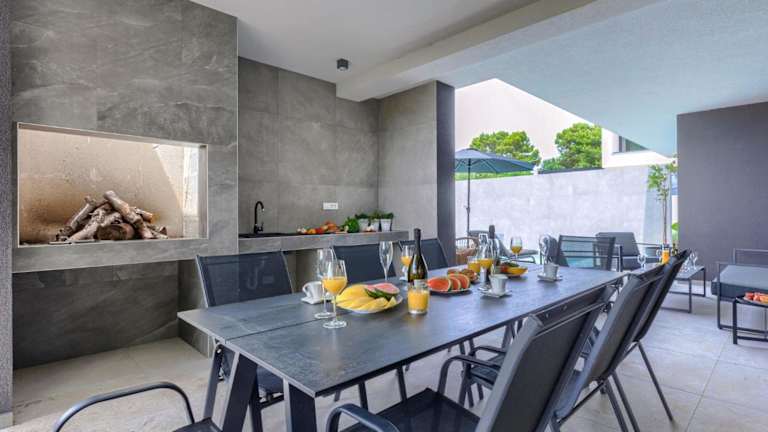 Die Villa umfasst eine gut ausgestattete Küche mit einem Kühlschrank, einem Geschirrspüler und einem Ofen. Insgesamt stehen den Gästen vier Badezimmer mit Dusche und Haartrockner zur Verfügung. Satellitenfernsehen ist ebenfalls vorhanden, um den Aufenthalt zu bereichern.