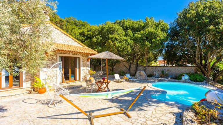 Die Villa Nionios bietet einen eigenen Außenpool, in dem Sie sich an warmen Tagen erfrischen können. Der Garten rund um die Villa lädt zum Entspannen ein und bietet eine schöne Umgebung zum Verweilen. In der Umgebung gibt es auch zahlreiche Aktivitäten, die Sie unternehmen können, wie zum Beispiel Wassersport am Strand, Wandern oder Radfahren in der Natur.