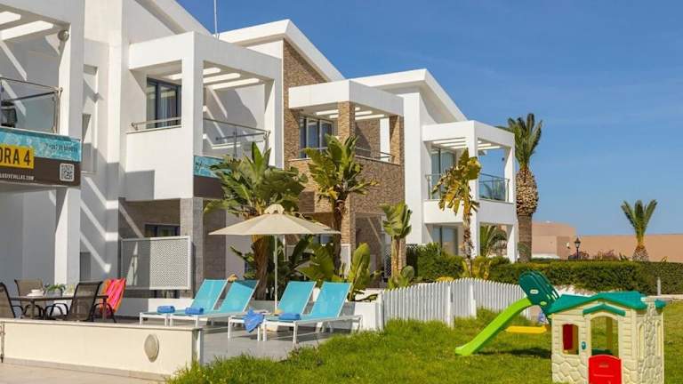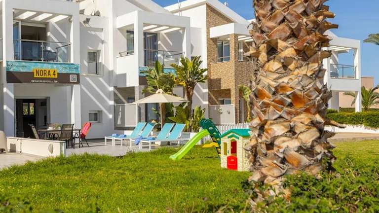Die Villa Nora befindet sich in der charmanten Ortschaft Protaras, nur 150 m vom Louma Beach entfernt. In unmittelbarer Nähe finden Sie eine herrliche Bucht und können das türkisfarbene Wasser des Mittelmeers genießen. Die Villa bietet einen idealen Ausgangspunkt, um die malerische Umgebung zu erkunden und die Schönheit der Küste zu entdecken. Die Strände Kalamies und Trinity Beach sind ebenfalls in kurzer Entfernung zu erreichen. Der beliebte Ferienort Ayia Napa ist nur 14 km entfernt und bietet eine Vielzahl von Unterhaltungs- und Freizeitmöglichkeiten. Der internationale Flughafen Larnaca ist etwa 42 km entfernt und kann bequem erreicht werden.